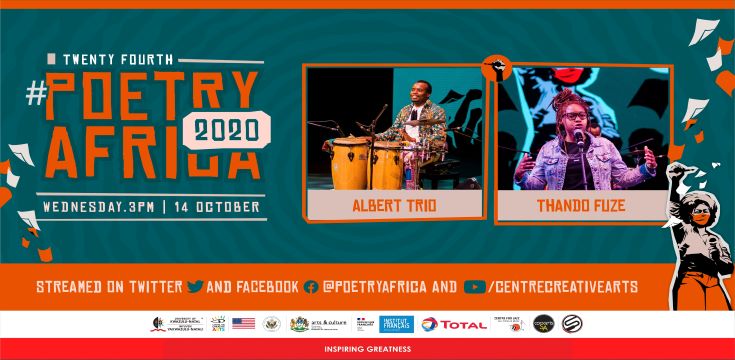 University of KwaZulu Natal’s Centre for Creative Arts and Centre for Jazz and Popular Music, in collaboration with iSupport Creative Business and supported by Concerts SA are launching a first of a series of collaborative performances to take place monthly. This first collaboration, between Albert Trio and poet Thando Fuze, will be streamed on Facebook during the Poetry Africa Festival on Wednesday 14 October at 3 pm.